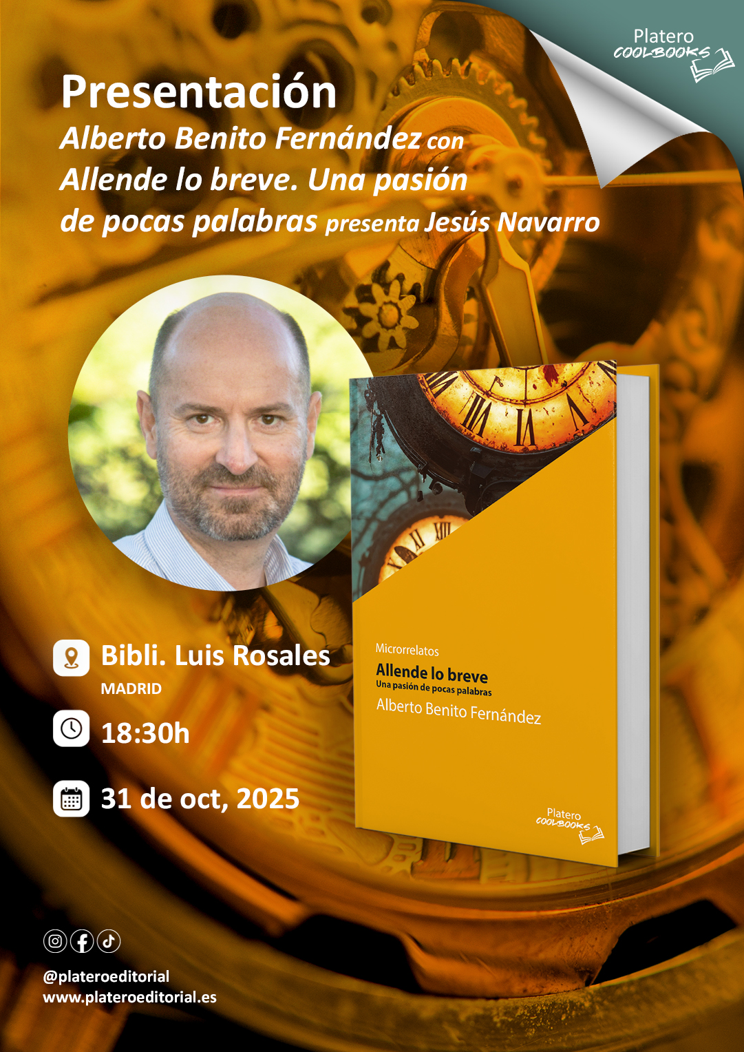 Nuestro autor Alberto Benito Fernández presenta su nueva obra "Allende lo breve. Una pasión de pocas palabras" el día 31 de octubre a las 18:30h en Biblioteca Luis Rosales en Madrid.