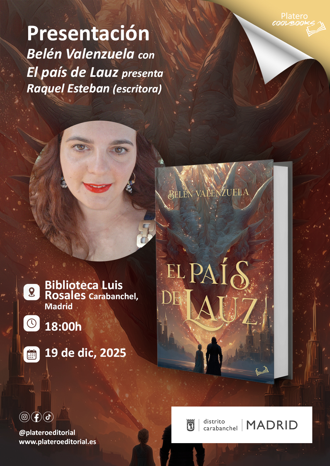 Nuestra autora Belén Valenzuela presenta y firma ejemplares de su obra "El país de Lauz" el día 19 de diciembre de 2025 en la Biblioteca Luis Rosales en Carabanchel, Madrid a las 18:00h, presenta Raquel Esteban, escritora.