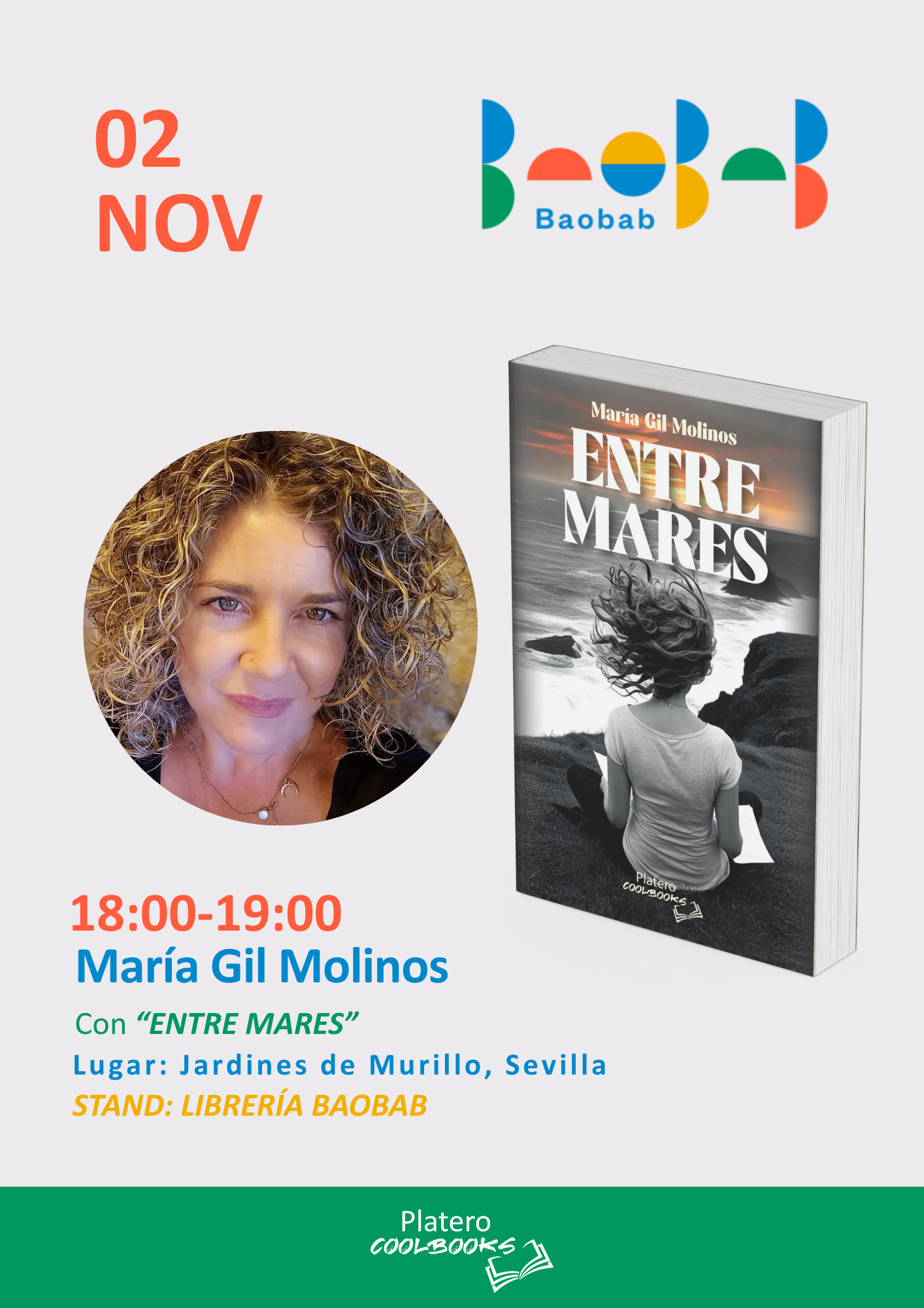 Este 02 de noviembre de 18 a 19h, nuestro autor María Gil estará firmando ejemplares de su obra Entre mares en el stand de LibreríasBaobab dentro de la Feria del Libro de Sevilla, que se celebra en los Jardines de Murillo.