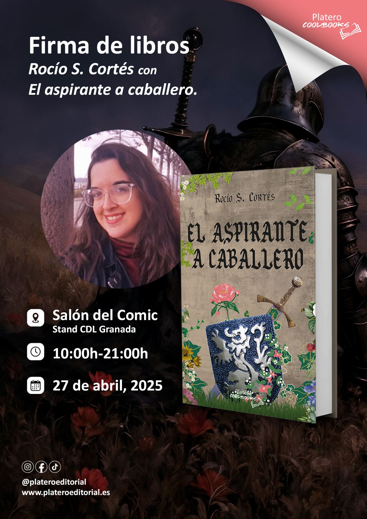 El próximo 27 de abril nuestra autoraRocío S. Cortés estará en la Salón del Comic de Granada de 10:00 a 21:00 horas con su obra: Aspirante a caballero.