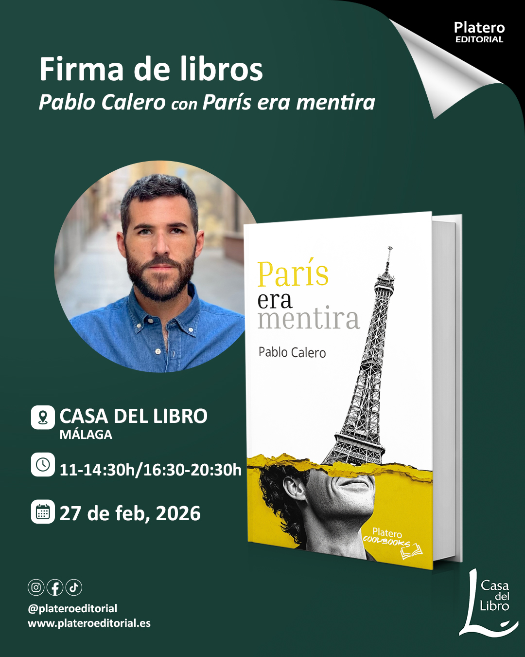 El próximo día 28 de noviembre en el Casa del Libro de Sevilla nuestro autorPablo Calero, tendrá el honor de firmar ejemplares de su nuevo y exitoso lanzamientoParís era mentira, a las 11:00h:14:30/16:30-20:30h