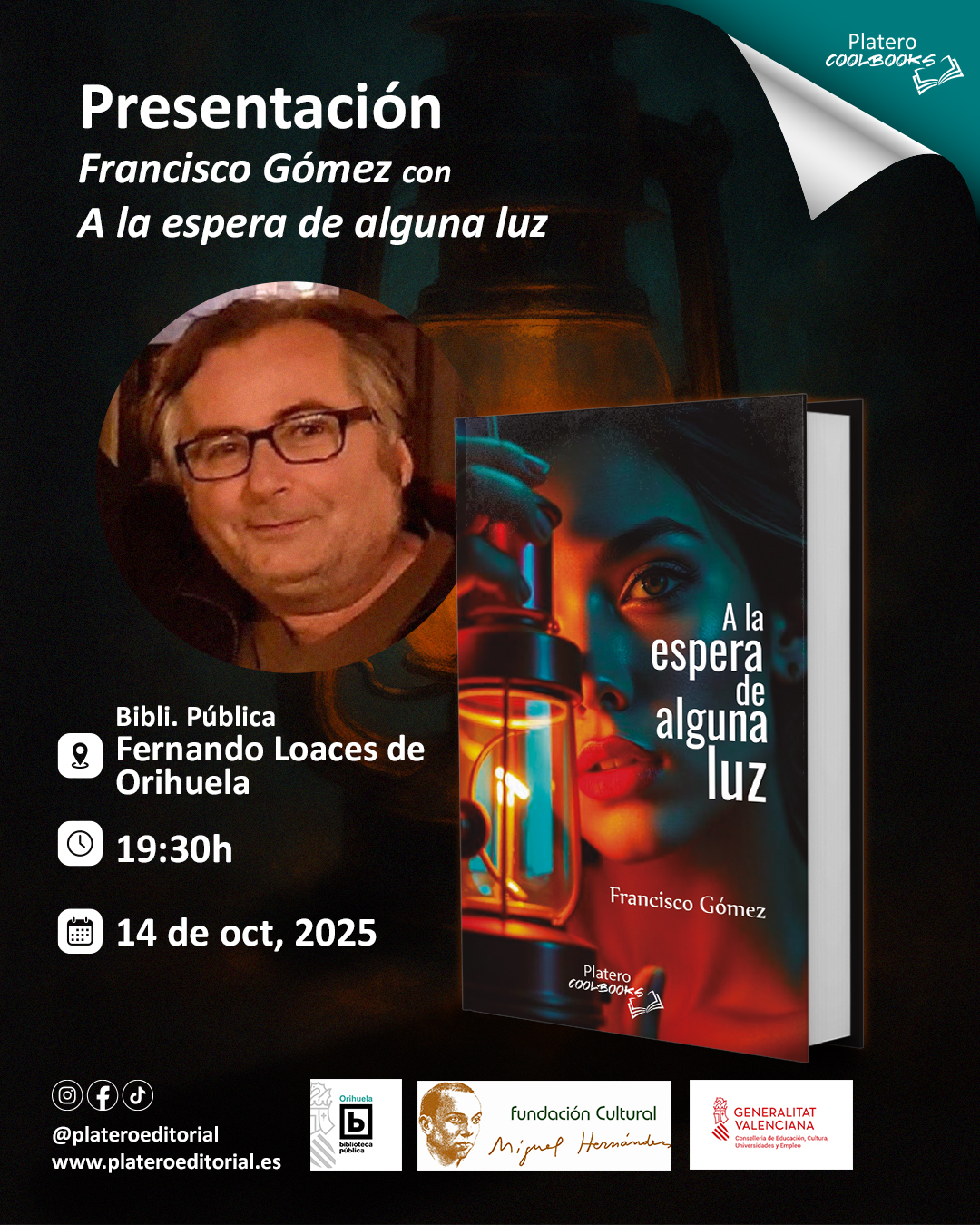 Nuestro autorFrancisco Gómez presenta su nueva obra A la espera de alguna luz el próximo 14 de octubre en el Biblioteca Pública Fernando Loaces de Orihuela a las 19:30h