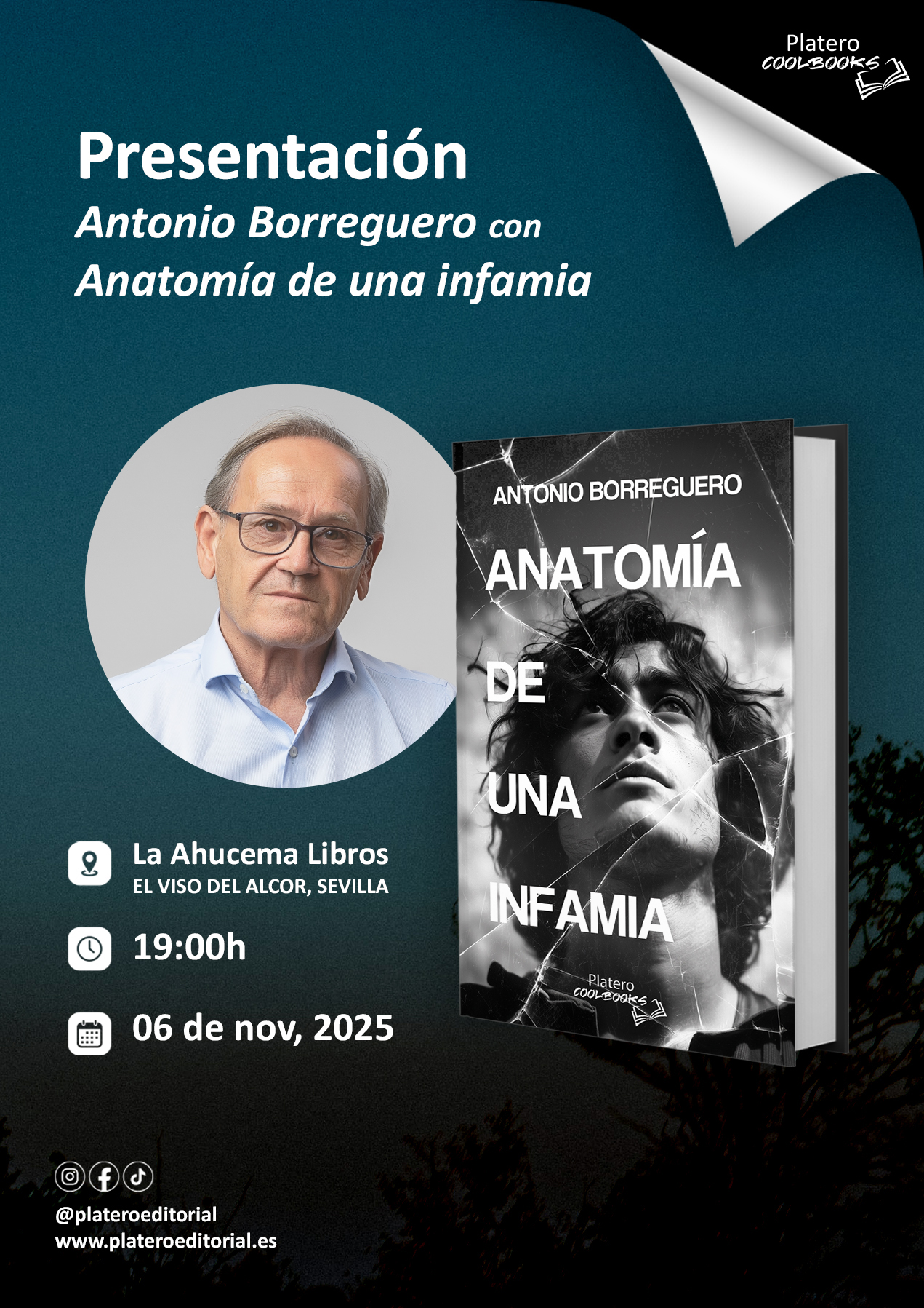 El próximo 06 de noviembre a las 19:00 horas en la La Ahucema Libros del Viso del Alcor, Sevilla nuestro autorAntonio Borreguero firmará ejemplares de su nueva obra Anatomía de una infamia