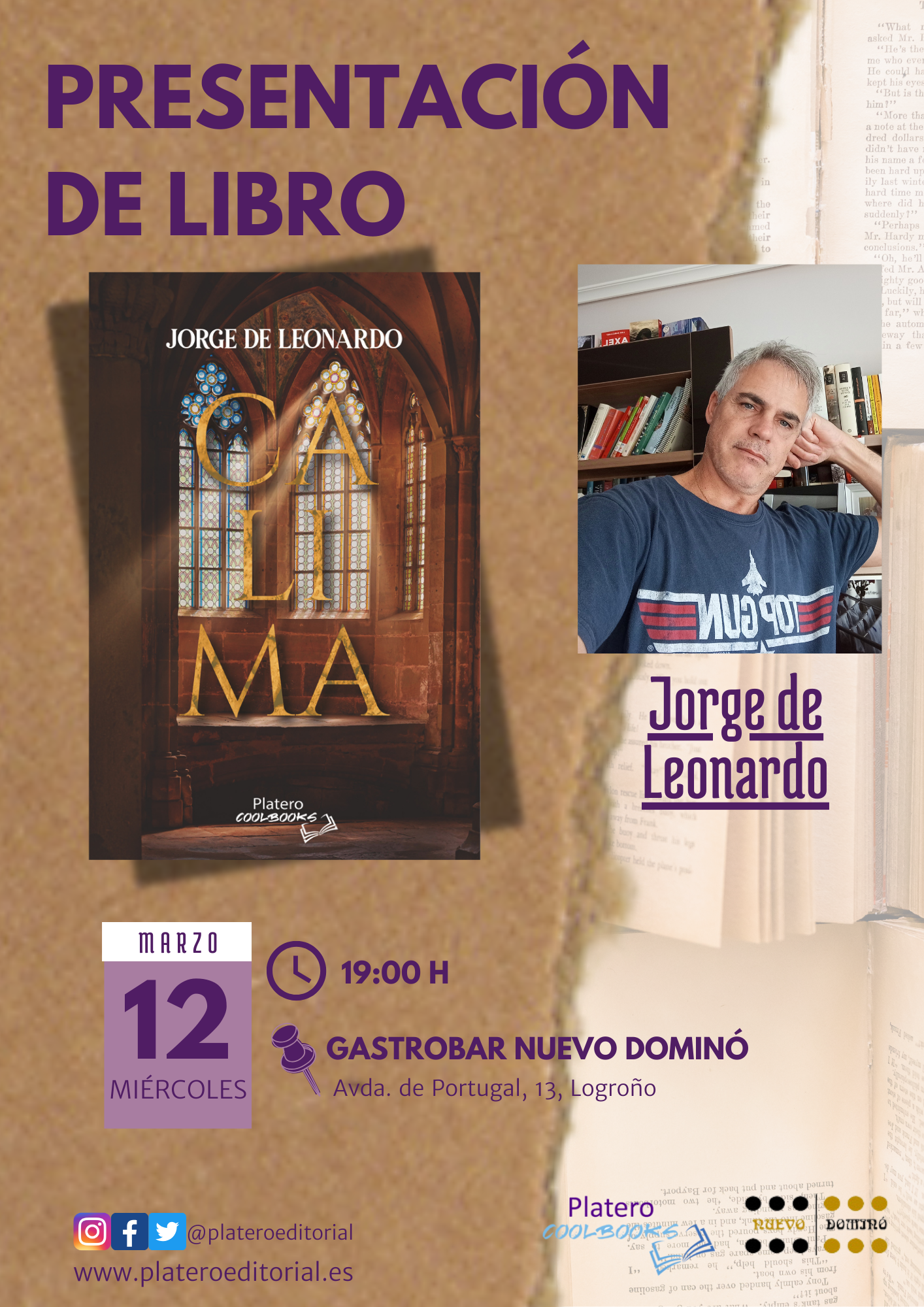 Nuestro autor Jorge de Leonardo presenta el próximo 12 de marzo a las 19:00 horas en el GastroBar Nuevo Dominó de Logroño su nueva novela negra Calima.