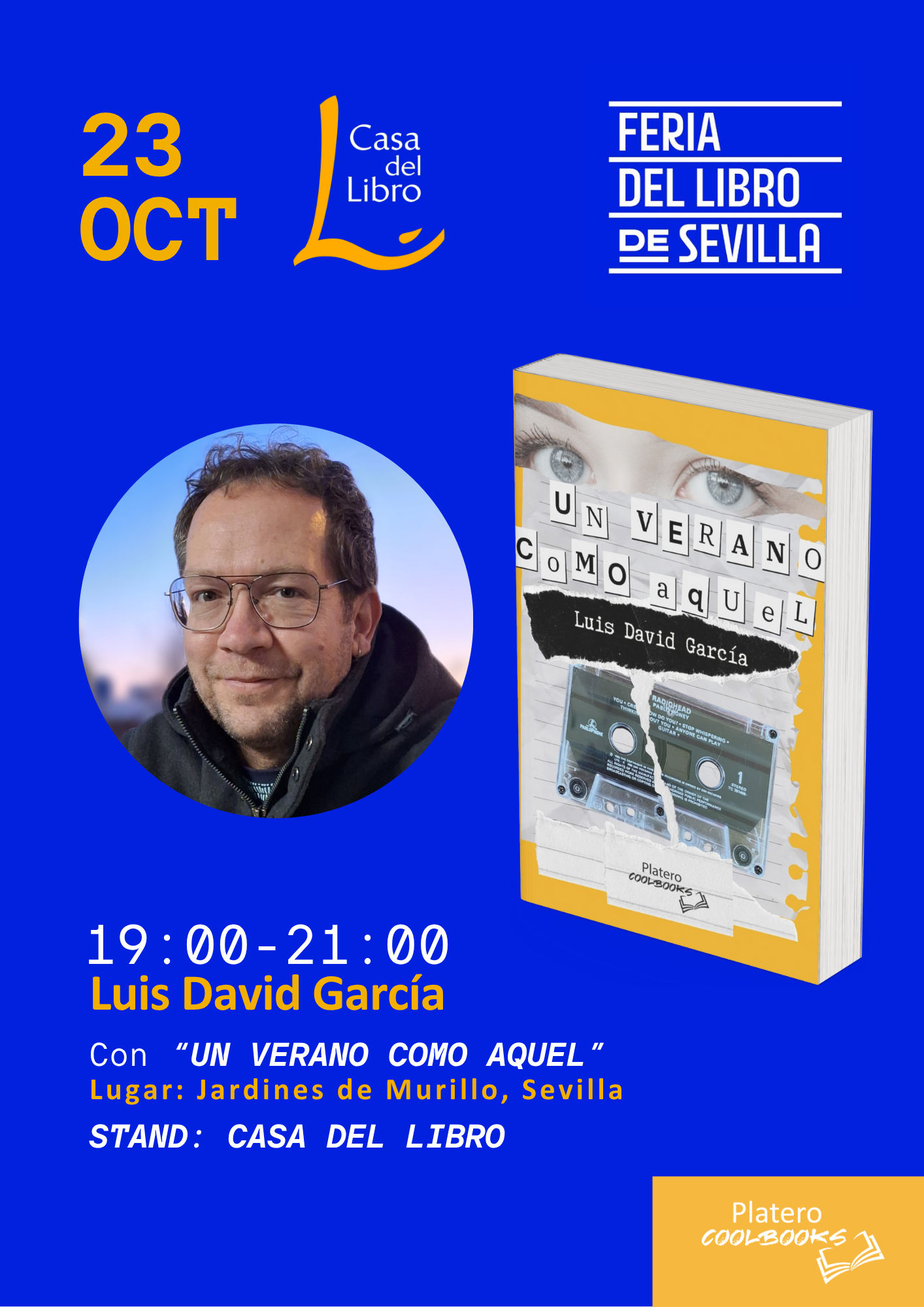 Este 23 de octubre de 19 a 21h, nuestro autor Abel González estará firmando ejemplares de su obra Un verano como aquel en el stand de Casa del Libro dentro de la Feria del Libro de Sevilla, que se celebra en los Jardines de Murillo.